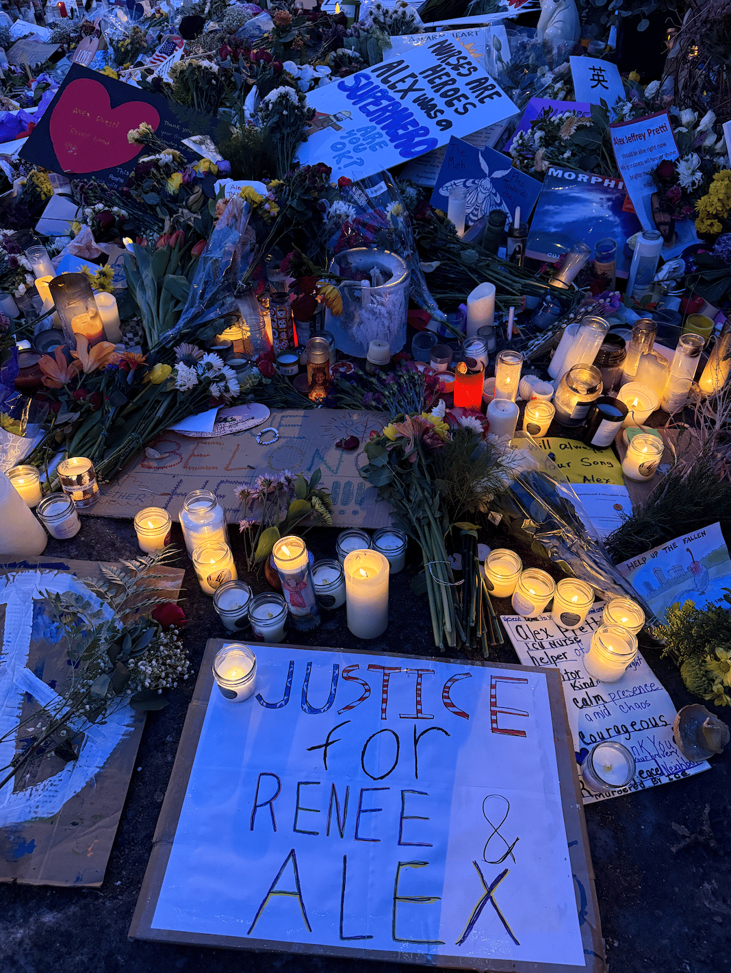 Last night I went by the memorial for Alex Pretti in Minneapolis. Beautiful messages of support, candles, flowers, and sorrowful people paying their respects. We were offered warm food and kind words. Looking around at the variety of faces, all unknown to me, yet friends somehow, I was held. That's Agape.