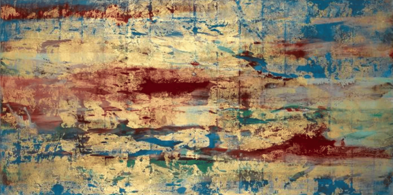 Mineral Pigments and Gold on Kumohada Paper, 36 1/5 × 72 in